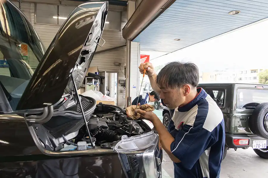 お客様に安心して乗っていただけるよう、納車前の車両を丁寧に点検・整備します。最終チェックは特に気を引き締めて行います。