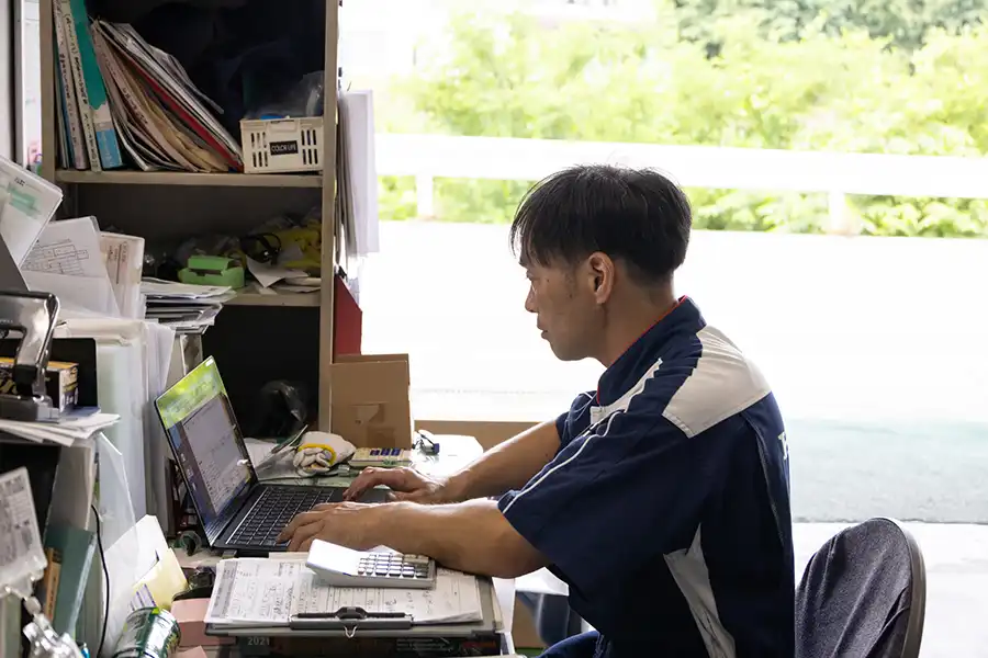 作業内容を正確に記録し、部品の在庫も把握。整備だけでなく、記録管理の正確さも信頼につながる大切な業務です。